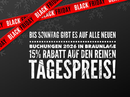 Bis Sonntag können Sie unsere Braunlager Wohnungen für Aufenthalte in 2026 mit einem Rabatt von 15% auf den reinen Tagespreis buchen.